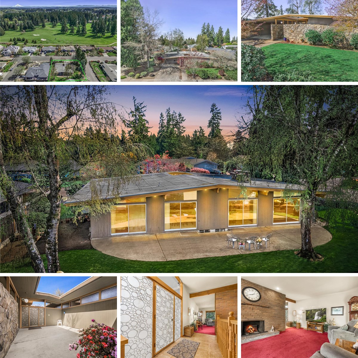 Atomic Ranch meets Mid-Century Modern in this beautifully designed home inspired by renowned architect Robert Rummer. Ideally situated just a stone’s throw from Willamette Valley Golf Course in a quiet neighborhood. Features abundant natural light, exposed beams, vaulted ceilings, and a private courtyard enhancing indoor-outdoor living. Offers 4 bedrooms, including a primary en suite and 3 bathrooms. Flexible floor plan includes living and family rooms, den or Office with a Murphy bed and workshop-utility room, lots of storage space. Finished basement includes a second kitchen and tongue-and-groove ceilings, ideal for multi-generational living or guest quarters. Conveniently located near the fairgrounds, shopping, dining, and entertainment. This home is a MUST-SEE!!!